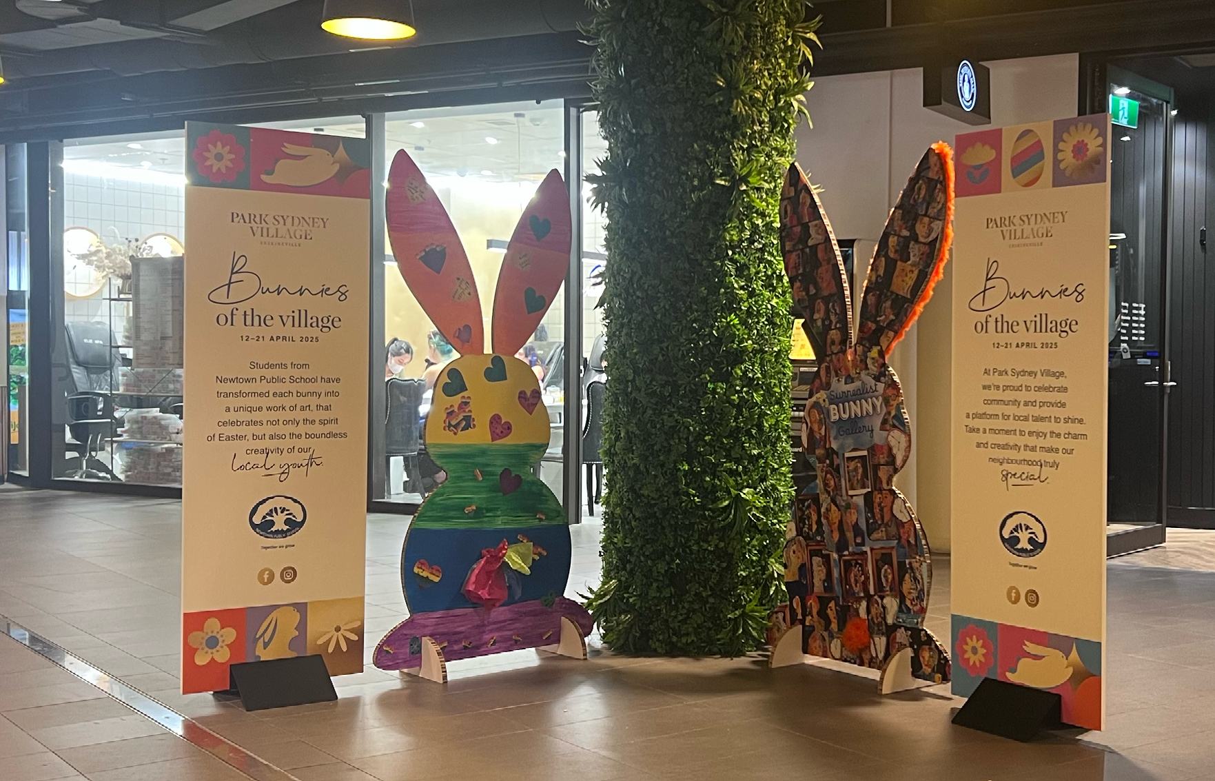 One-Line Summary: Local schools decorated bunny standees, creating community-driven Easter activation with zero additional creative costs.